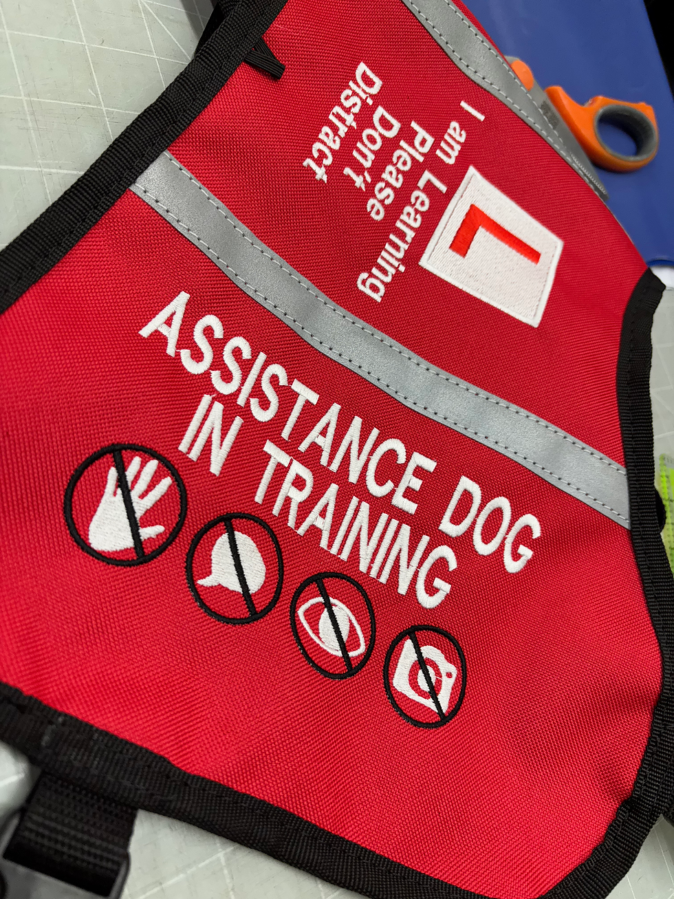 We offer a large range of vests for Training dogs to working Assistance Dogs that are ready to ship. Math is involved to determine what size suits your dog best.