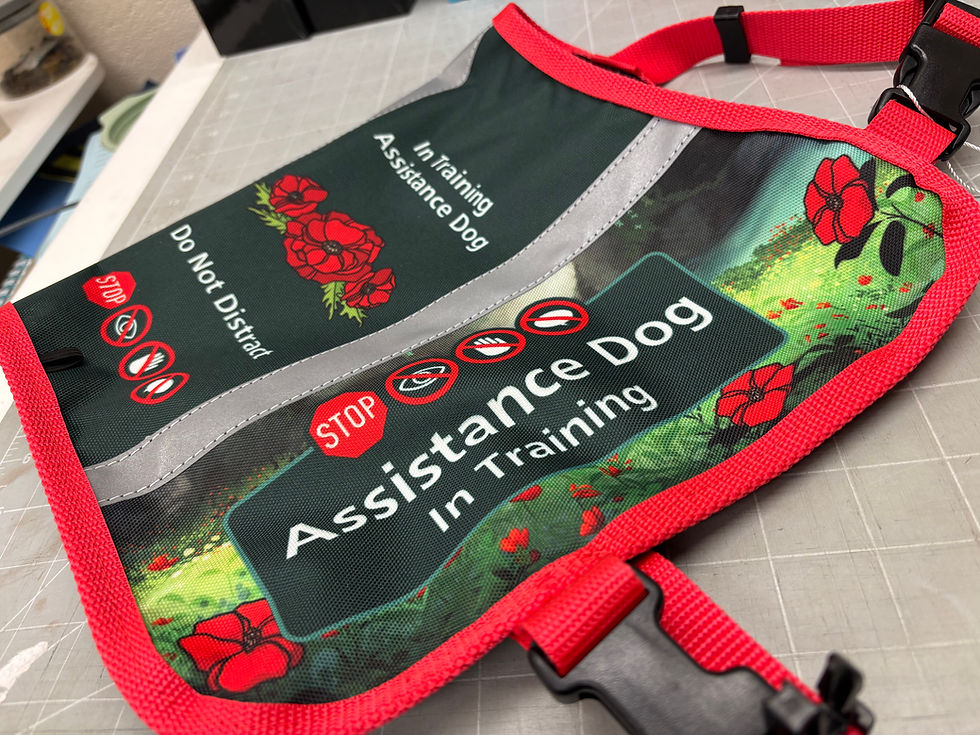 We offer a large range of vests for Training dogs to working Assistance Dogs that are ready to ship. Math is involved to determine what size suits your dog best.